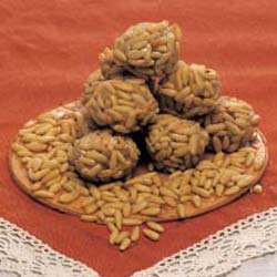 La pasta di pinoli viene fatta riposare per oltre 40 giorni con aggiunta di miele di sulla e zucchero. Dalla pasta si formano delle palline che vengono cotte in forno a temperatura di circa 200°C per alcuni minuti. Una volta tolte dal forno si cospargono di zucchero a velo e di pinoli interi su tutta la superficie.