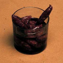 salsiccia di cinghiale sott’olio ha intenso colore rosso bruno,