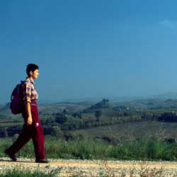 via the farm roads running between the olives on the hillside. From Monteriggioni,