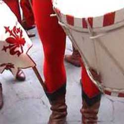 Since, matches start with a procession all around the streets of the old town accompanied by trumpet blasts and the roll of drums. All 530 participants, players, soldiers, musicians, noblemen and flagwavers dress in 16th century costumes. Ocasionally the procession stops and 'calverin' canons with blanks are set off.