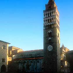 The Cathedral, dominates the square of the same name with a fascinating façade with three different balconies. Founded in the V century, it was remodelled in the Romanic Pisa form in the XII and XIII centuries. In the following centuries it underwent diverse remodelling, the last in 1951. It is named for S. Zeno. The three nave interior preserves paintings and statues by famous artists, together with the Renaissance masterpiece by Verrocchio: the Sepulchre Monument to Cardinal Forteguerri.
